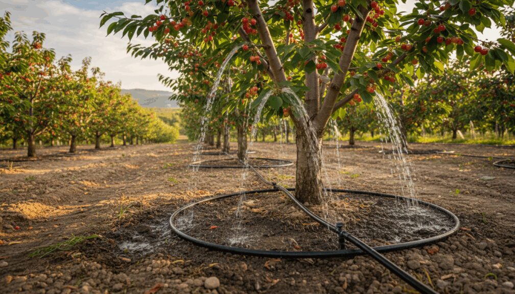 El riego por goteo es un método eficaz de regar tus cerezos, ya que consiste en instalar tuberías paralelas a las filas de árboles. Utilizar goteros autocompensados que liberen de cuatro a ocho litros de agua por hora es una forma de garantizar un riego uniforme y frecuente.