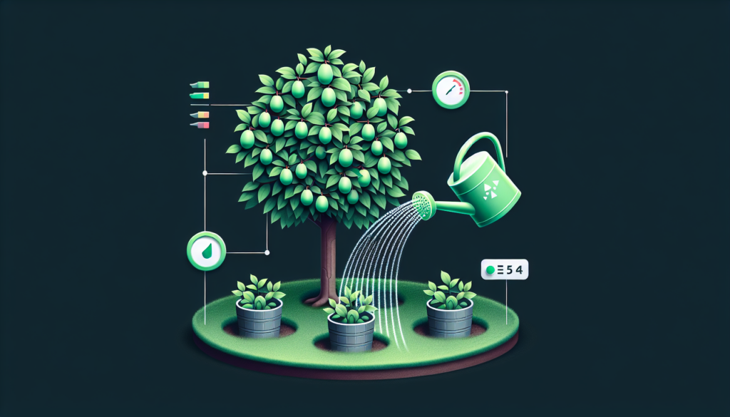 Cuando riegues, aplica el agua lenta y uniformemente para que penetre bien y minimizar la escorrentía. Regar la zona radicular del árbol es más eficaz que rociar directamente el follaje o los frutos. El riego por goteo o las mangueras de remojo pueden ser métodos eficaces para hacer llegar el agua directamente a las raíces.